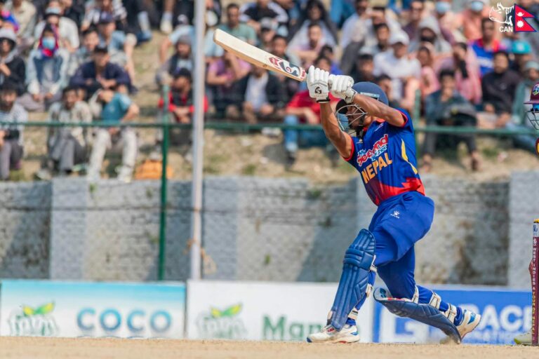 ओपनर आसिफ शेख शून्य र कुशल भुर्तेल १ रनमा आउट भएका थिए । कुशल मल्ल ४, सन्दीप जोरा, दीपेन्द्रसिंह ऐरी र गुलशन झा १९–१९ रनमा आउट भए ।