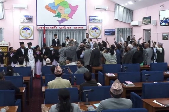 मुख्यमन्त्री खगराज अधिकारीले आइतबार प्रदेश सभाबाट विश्वासको मत लिने क्रममा संविधानको धारा १८८ को उपधारा ३ मा भएको व्यवस्था अनुरूप प्रदेश सभामा तत्काल कायम रहेको सम्पूर्ण सदस्य सङ्ख्याको बहुमत मत प्राप्त गर्नुपर्नेमा प्रक्रिया पूरा नगरी सभामुख धितालले असंवैधानिक कदम चालेको नेपाली कांग्रेस गण्डकी प्रदेशका प्रमुख सचेतक नन्दप्रसाद न्यौपानेले बताए।