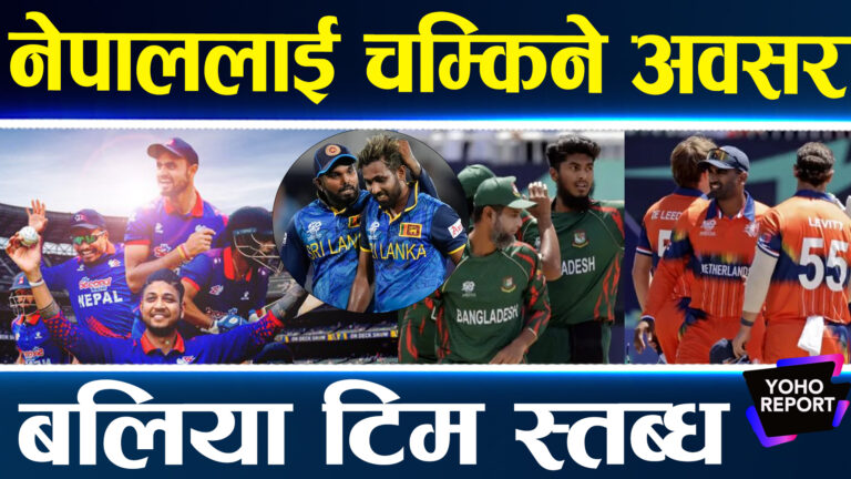 काठमाडौँ— टी ट्वान्टी विश्वकप क्रिकेटअन्तर्गत नेपाल र श्रीलंकाबीचको समूह चरणको खेल वर्षाका कारण रद्द भएको छ । आज बिहानका लागि तय खेल वर्षाले रद्द भएसँगै नेलाल र श्रीलङ्काले १:१ अंक बाँडेका छन् । अंक बाँडेको श्रीलङ्का अंक तालिकाको पुछारमा छ । दुई खेलमा पराजय व्यवहोरेको श्रीलंकाले अब नेदरल्यान्ड्ससँग खेल्न बाँकी छ । यता नेपालको भने सुपर आठमा पुग्ने आशा अझै जीवितै छ । तर दुई खेल जित्नै पर्ने दबाबमा रहेको नेपाल सुपर–आठमा पुग्ला त ?