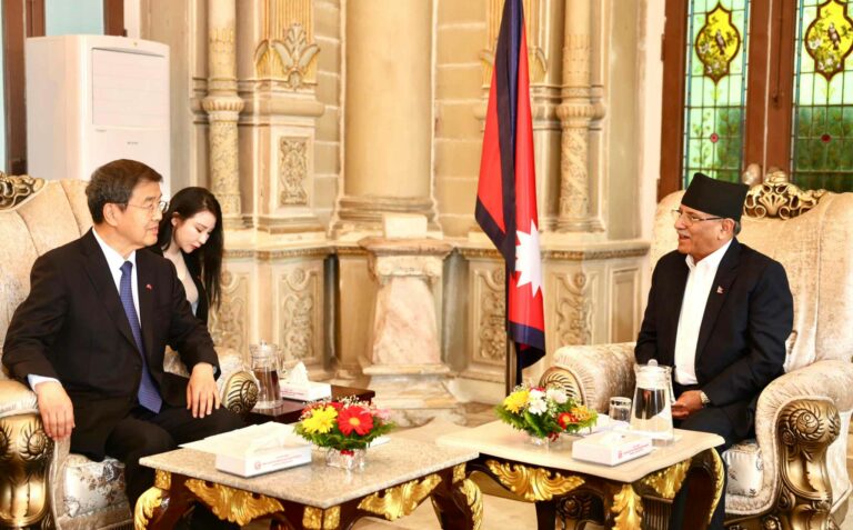 काठमाडौँ । प्रधानमन्त्री पुष्पकमल दाहाल ‘प्रचण्ड’सँग चिनियाँ जनराजनीतिक परामर्शदात्री सम्मेलन (सिपिपिसिसी) का उपाध्यक्ष बार्टरले आज शिष्टाचार भेट भएको छ ।