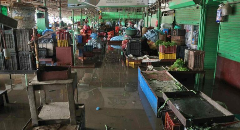 काठमाडौँ— वाग्मतीमा आएको बाढीका कारण काठमाडौंको बल्खुस्थित तरकारी बजार डुबानमा परेको छ ।