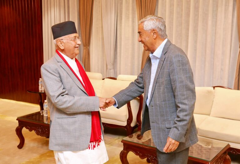 काठमाडौँ — नेपाली कांग्रेसको संसदीय दलको बैठकले नेकपा एमालेका अध्यक्ष केपी शर्मा ओली र कांग्रेस सभापति शेरबहादुर देउवाबीच आलोपालो सरकारको नेतृत्व गर्ने सहमति कार्यान्वयन गर्ने दृढता व्यक्त गरेको छ ।