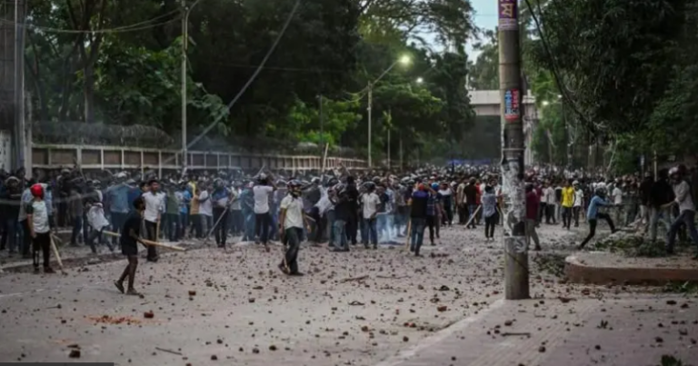 प्रधानमन्त्री शेख हसिनाले बुधबार राष्ट्रको नाममा सम्बोधन गरेपछि हिंसा झन् भड्किएको बीबीसीले जनाएको छ । प्रदर्शनकारीहरुले राजधानी ढाकासहित कयौं स्थानहरुमा आगजनी र तोडफोड गरेका छन् । ठाउँ–ठाउँमा प्रहरीसँग झडप भएको छ । हिंसा बढ्दै गएपछि इन्टरनेट सेवासमेत बन्द गरिएको छ । स्कुल कलेजहरु अनिश्चितकालीन बन्द छन् ।
