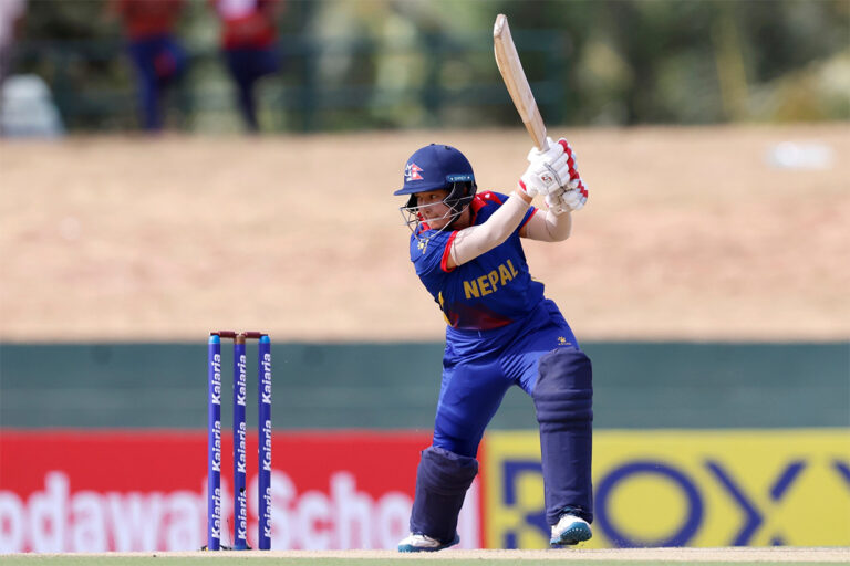 श्रीलंकाको धमुल्ला अन्तर्राष्ट्रिय रंगशालामा सम्पन्न खेलमा सम्झनाले करियरकै पहिलो अन्तर्राष्ट्रिय अर्धशतक बनाएपछि यूएईले दिएको ११६ रनको लक्ष्य नेपालले १६.१ ओभरमा चार विकेट गुमाएर भेटायो ।