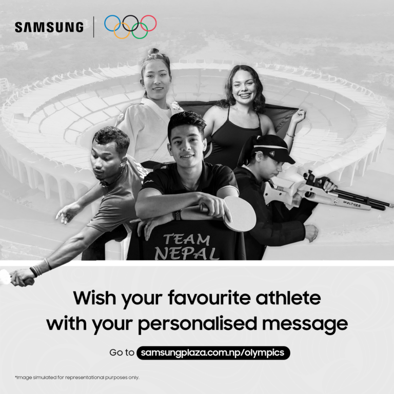 विश्वमञ्चमा उत्कृष्टताका लागिप्रयासरत नेपाली खेलाडीहरूलाई आफ्नो विशेष समर्थनको सन्देश पठाउन www.samsungplaza.com.np/olympicsमा जानुहोस्। तपाईँका प्रोत्साहनका शब्दहरूले विश्वको सबैभन्दा ठुलो खेलकुद प्रतियोगितामा हाम्रो राष्ट्रको प्रतिनिधित्व गर्न लागेकाहाम्रा खेलाडीहरूको मनोबल बढाउन र उत्प्रेरित गर्न निश्चित रूपमा आफ्नो भूमिका खेल्नेछ।
