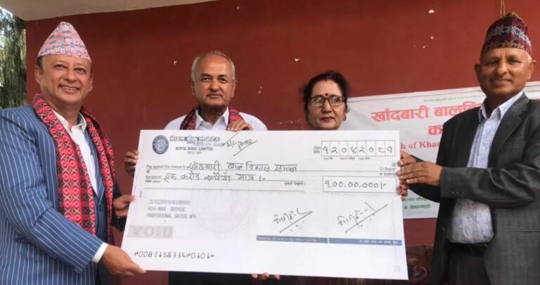 काठमाडौँ— प्रशासनविद् एवं समाजसेवी हीरामणि र सीता घिमिरेले खाँदबारीस्थित बालबिकास समाजलाई एक करोड सहयोग प्रदान गरेका छन् ।