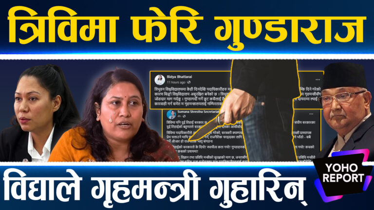 वर्षौंदेखि विद्यालयमा राजनीति र विश्वविद्यालयमा गुण्डागर्दीको आतंक मचाएका कांग्रेस एमाले नै जनता गुहार्नु पर्ने अवस्थामा पुगेका छन् । शिक्षामन्त्री विद्या भट्टराईले त्रिभुवन विश्वविद्यालयमा असुरक्षा बढेको भन्दै सुरक्षा मागेकी छन् । तर, उदेकलाग्दो कुरा के छ भने मन्त्रिपरिषद्मा सुरक्षा माग्नु पर्ने मन्त्रीले फेसबुकमा मागिन् । गृहमन्त्रीलाई गुहार्नु पर्ने विद्याले जनता गुहारिन् । अर्थात, वर्षौँदेखि एमाले कांग्रेसको छत्रछायाँमा रहेका गुुण्डासँग अब जनताले लडिदिनुपर्ने शिक्षा मन्त्रीको भनाइ छ । निवर्तमान शिक्षामन्त्री सुमना श्रेष्ठाले विश्वाविद्यालयलाई राजनीतिक हस्तक्षेपमुक्त बनाउन खोजेकी थिइन् । तर सरकार फेरिएपछि नेतृत्वमा आएकी भट्टराई आफैँ राजनीतिमा सक्रिय शिक्षकलाई कारबाहीको विपक्षमा देखिएकी थिइन् ।