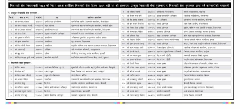 २ लाख रुपैयाँ राशिको सर्वोत्कृष्ट निजामती सेवा पुरस्कार पाउने कर्मचारी भने सरकारले यस वर्ष पनि छनोट गर्न सकेन । पछिल्लो ८ वर्षदेखि सरकारले सर्वोत्कृष्ट कर्मचारी घोषणा गरेको छैन ।