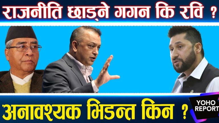 यो राजनीति छाड्ने ध्वास कुनै जनताको पक्षमा थिए । यो त रवि लामिछाने ठग करार भए उनले राजनीति छोड्ने र नभए गगनले राजनीति छोड्ने फगत राजनीति स्वार्थको बेलुत त्यतिबेला विस्फोट मात्र भएको थियो । अब उनीहरुमध्ये कसैले राजनीति छोड्ने बेला भइसकेको हो । किनभने सहकारी ठगीबारे संसदीय छानविन समितिको प्रतिवेदन सार्वजनिक भइसकेको छ । तर, अहिले पनि एक पक्ष म ठग होइन भन्दैछ भने अर्को पक्ष फलानो ठग नै हो भन्दैछ ।