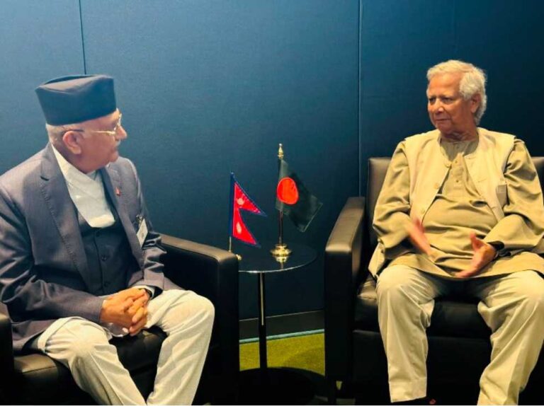 काठमाडौँ— प्रधानमन्त्री केपी शर्मा ओली र बंगलादेश अन्तरिम सरकारका प्रमुख सल्लाहकार डा मोहम्मद युनुसबीच भेटवार्ता भएको छ ।