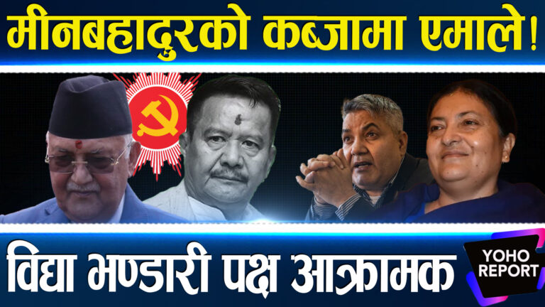 नाम, बद्नाम जे भएपनि मुखमै आएको मीनबहादुरको बक्सिस नछाड्ने मुडमा एमाले पुुगेको छ । बल्खुस्थित आफ्नै जग्गामा केन्द्रीय कार्यालयको भवन बनाउने तयारीमा रहेको एमालेले आफ्ना कार्यकर्ताहरुबाट १०० रुपैयाँ चन्दा उठाउने गरेको थियो । तर, असोज २३ गते एकाएक ठूलै माछो र दानबीर भेटिएको भन्दै हठात्मा कीर्तिपुरमा केन्द्रीय कार्यालय भवनको शिलान्यास गर्नु पर्ने अवस्थामा एमाले पुग्यो । तर, सचिवालय बैठकमै अध्यक्ष केपी शर्मा ओलीले ती दानवीरको नाम नखुलाउँदा एकाएक शिलालेखमा मीनबहादुुरको नाम लेखिएको पाइएपछि नेताहरु नै छक्क परेका थिए । यसरी पार्टीका पदाधिकारीलाई समेत ढाँटेर व्यापारीको पाउमा पुगेका ओलीमाथि अहिले पार्टी भित्रैबाट दान फिर्ता गर्न दबाब बढेको छ । तर, अब लिइसकेपछि फिर्ता गरे अनिष्ट हुने बुझेको एमाले बरु विरोधकै बीच जग्गा दान स्वीकार गरेर भाटभटेनी भवनमा एमाले कार्यालय ठड्याई छाड्ने अठोटमा देखिन्छ ।