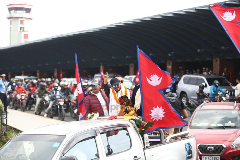 काठमाडौँ— सातै महादेशका अग्ला हिमाल (सेभेन समिट) को चुचुरोमा पुगेर कीर्तिमान थपेका आरोही निर्मल पुर्जा ‘निम्स’ को त्रिभुवन अन्तर्राष्ट्रिय विमानस्थलमा भव्य स्वागत गरिएको छ । उहाँले सेभेन समिटको अन्तिम गन्तव्य चुचुरो इन्डोनेसियाको क्यास्टेर्न पिरामिडको आइतबार १स् ५० मा सफल आरोहण सकेर निम्स नेपाल फर्किनुभएको हो । क्यास्टेर्न पिरामिड विश्वको सात शिखरमध्येको एक हो ।