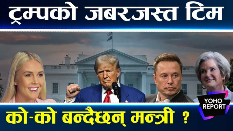 यता, राष्ट्रपतिमा निर्वाचित ट्रम्पले ह्वाइट हाउसका महत्त्वपूर्ण पदमा नियुक्ति थालेका छन् । राष्ट्रपति ट्रम्पले आफना टिममा कस्ता ब्यक्तिलाई नियुक्त गर्लान् त ? बाइडनबाट ट्रम्पलाई हुने सत्ता हस्तान्तरणमा सघाउन गठित ट्रम्पको समूहले नयाँ प्रशासनमा कसलाई नियुक्त गर्ने भनेर छलफलमा जुटेकाछन् ।