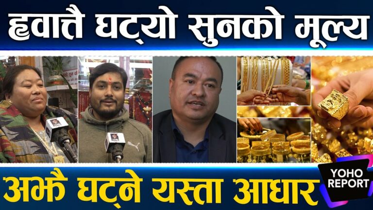 सोमबार नेपाली बजारमा अनपेक्षित ढंगले सुनको मूल्यमा ठूलो गिरावट आयो । तोलामा नै झण्डै १६ हजार रुपैयाँले मूल्य घट्दा आमसर्वसाधारण अचमिम्त बने । बढ्दा ह्वात्तै बढ्ने भए पनि घट्दा थोरै मूल्यमा मात्रै गिरावट आउने परम्पराजस्तै बनिसकेको नेपाली बजारमा अचानक सुनको मूल्यमा भारी गिरावट आउनुको कारण के हो त ?