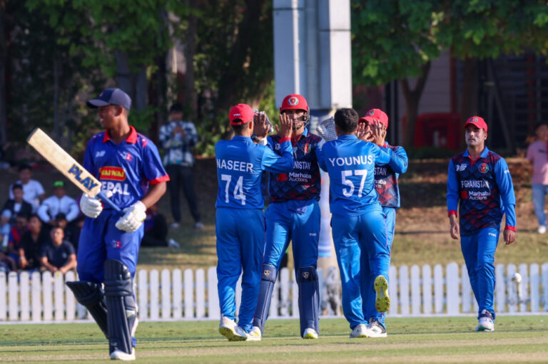नेपालका लागि ओपनर आकाश त्रिपाठीले सर्वाधिक ४३, अभिषेश तिवारी र उत्तम मगरले २९–२९ रन बनाएका थिए । अब नेपालले अन्तिम खेल अफगानिस्तानसँग मंगलबार खेल्नेछ ।