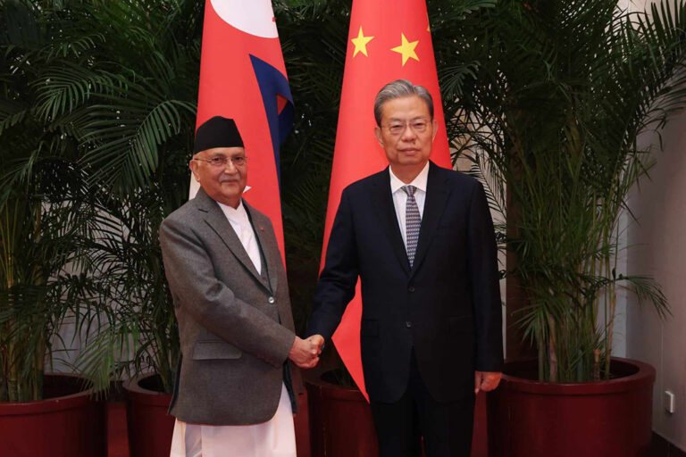 प्रधानमन्त्री ओली र चिनियाँ जनकांग्रेसका अध्यक्ष लेजबीच भेटवार्ता