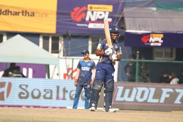नेपाल प्रिमियर लिग (एनपीएल) मा पोखरा एभेन्जर्सविरुद्ध लुम्बिनी लायन्सका कप्तान रोहित पौडेलले अर्धशतक पूरा गरेका छन् । टीयु क्रिकेट मैदानमा लुम्बिनीका कप्तान रोहितले ३३ बलमा अर्धशतक पुरा गरेका हुन् । टस जितेर पहिला ब्याटिङ गरिरहेको लुम्बिनीले १३ ओभरका खेल सकिँदा ३ विकेट गुमाएर १ सय ८ रन बनाएको छ । रोहितलाई टम मुर्सले साथ दिइराखेका छन् । उनी १९ बलमा २३ रन बनाएर खेलिरहेका छन् । लुम्बिनीका दुई ओपनर शुन्य रनमा आउट हुँदा सन्दीप जोरा १८ रन बनाएर आउट भए ।