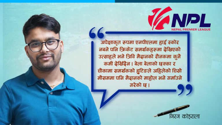 काठमाडौं– टी–२० क्रिकेट भत्रे बित्तिकै चौका, छक्का जस्ता ठूला प्रहारको अपेक्षा हुन्छ । हेर्न र मनोरञ्जनका लागि पनि यस्तैमा नै मज्जा आउँछ । नेपाल प्रिमियर लिग एनपीएलमा पनि केही यस्तै दृश्य देखिने अपेक्षा गरिएको थियो । एक त तुलनात्मक रुपमा त्रिवि क्रिकेट मैदानको बाउण्ड्री पनि सानो र अर्काे विदेशी लिगमा ठूला ठूला प्रहार गर्ने खेलाडीहरूको आबद्धताले दर्शकहरू चौका र छक्काको तुफानी व्याटिङ हेर्ने पाइनेमा आशावादी थिए । आफूलाई ‘बिग हिटर’को रुपमा प्रमाणित गरिसकेका खेलाडीहरूको उक्त खेल कौशल हेर्न नेपाली क्रिकेट समर्थकहरू घरबाट त्यही अभिलाषाका साथ मैदान पुगिरहेका छन् । तर, जारी एनपीएलको लिग चरणसम्ममा दर्शकले सोचेअनुरुपको जस्तो खेल हुन सकेको छैन । एकाधबाहेक अधिकांश खेलहरू ‘लो स्कोरिङ’ कै भएका छन् ।