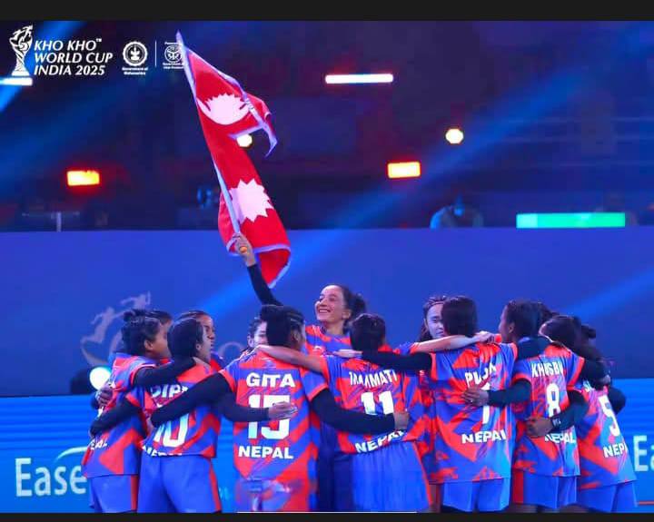 काठमाडौं—भारतमा भएको पहिलो खो खो विश्वकपको उपाधि जित्नबाट नेपाली महिला टोली चुकेको छ । नयाँ दिल्लीस्थित इन्दिरा गान्धी इन्डोर स्टेडियममा आज साँझ भएको फाइनल खेलमा नेपाल भारतसँग पराजित हुँदै इतिहास रच्नबाट चुकेको हो । पहिलो खो खो विश्वकपको उपविजेतामा सीमित नेपाल भारतसँग ७८–४० अंकले पराजित भएको हो । नेपाललाई हराउँदै घरेलु महिला टोली पहिलो संस्करणको खो खो विश्व विजेता बन्न सफल भएको छ । प्रतियोगिता अन्तर्गत आजै पुरुष तर्फको उपाधि भिडन्त पनि हुँदैछ । पुरुषतर्फ पनि नेपाली टोलीले भारतसँग नै उपाधिका लागि प्रतिस्पर्धा गर्दैछ । पुरुषतर्फ २० र महिलातर्फ १९ टिम सहभागी प्रतिस्पर्धामा नेपाल र आयोजक भारतका दुवै टिम फाइनलमा पुगेका हुन् ।