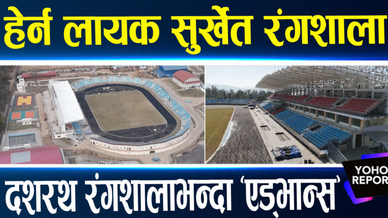 दशौं राष्ट्रिय खेलकुद प्रतियोगिता आयोजना गर्नका लागि कर्णाली प्रदेशको राजधानी सुर्खेतको वीरेन्द्रनगरमा सुविधासम्पन्न रंगशाला निर्माण भएको छ । प्रदेशकै गौरवको आयोजना अन्तरगत रहेको रङ्गशालामा एकैसाथ फुटबल मैदान र एथलेटिकसका खेलहरु संचालन गर्न सकिने गरि संरचना निर्माण गरिएको हो । १० हजार दर्शक क्षमताको पाराफिटसहित रङ्गशाला भित्रिन र बाहिरिन १२ वटा साना तथा ठूला गेटहरु निर्माण गरिएका छन् । भीआईपी पाराफिटतर्फ माथिबाट आकर्षक टनेल लगाइएको छ । मुख्य रंगशालाको बाहिरपट्टि भलिबल कोर्ट, बास्केटबल, स्वीमिङ कोर्टहरु तयार भइसकेका छन् । छेउ छेउमा दुई ठूला कभर्ड हलहरु निर्माण गरिएका छन् ।