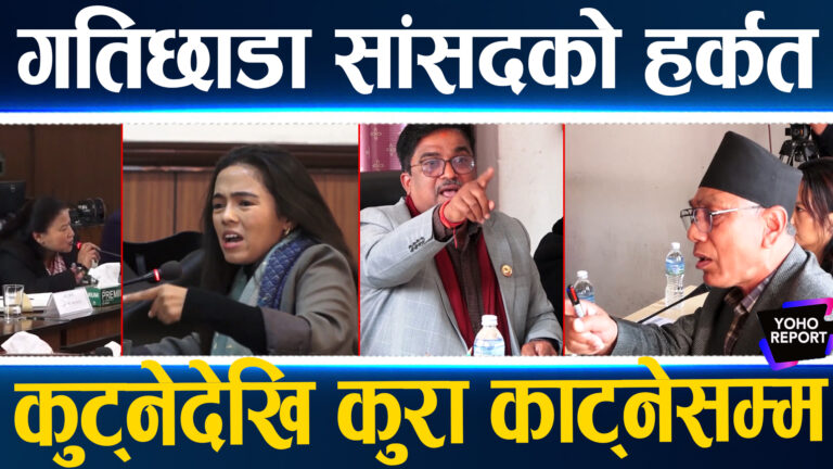 प्रतिनिधिसभा अन्तर्गतको कृषि, सहकारी तथा प्राकृतिक स्रोत समितिको बुधबारको बैठकमा देखिएको दृश्यले अहिले सामाजिक सन्जाल तताईरहेको छ । भिडियोमा राष्ट्रिय स्वतन्त्र पार्टिकी सांसद विनिता कठायत आक्रोशित रुपमा प्रस्तुत भईरहेकी छन् । तीन मिनेट तिन सेकेण्ड लामो सो भिडियोमा उनी भन्छिन् ‘नेपाली कांग्रेसको पनि लिस्ट निकाल्ने हो भने धेरैजनाको छ सभापतिज्यू, कसले कति जनासँग विवाह गरेका छन् भनेर । त्यो सूची सार्वजनिक गरिदिन सक्छौं’