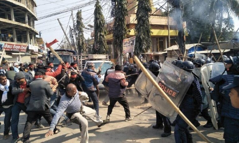काठमाडौं—काठमाडौंको टेकुमा आइतबार कवाडी व्यवसायी र नगर प्रहरीबीच झडप भएको छ । झडपको क्रममा दुवै पक्ष गरी ५ जना घाइते भएका छन् । घाइते हुनेमा ३ जना कवाड व्यवसायी छन् भने २ जना नगर प्रहरी रहेका छन् । कवाडी गोदाम हटाउन पुगेको काठमाडौं महानगरपालिकाको नगर प्रहरी बललाई कवाड व्यवसायीहरूले अवरोध गर्न खोजेपछि झडप भएको हो ।