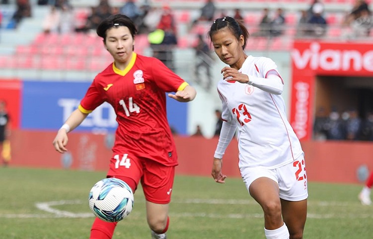 काठमाण्डौ – अन्तर्राष्ट्रिय महिला फुटबल प्रतियोगितामा म्यानमारले किर्गिस्तानलाई हराएको छ । त्रिपुरेश्वरको दशरथ रङ्गशालामा आज भएको पहिलो खेलमा म्यानमारले किर्गिस्तानलाई ५–० गोलले हरायो ।