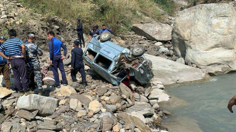 काठमाडौं—म्याग्दीको अन्नपूर्ण गाउँपालिका–३ को गुइठेभिरमा इको भ्यान दुर्घटना हुँदा एक जनाको मृत्यु भएको छ । तीन जना घाइते भएका छन् । नारच्याङमा रहेको शिव मन्दिर जाने यात्रु चढेको भ्यान सडकबाट करिब एक सय ५० मिटर तल कालीगण्डकी किनारमा खसेर दुर्घटना भएको हो । बेनी–जोमसोम–कोरला सडकअन्तर्गत अन्नपूर्ण गाउँपालिका–३ को सुकेबगरबाट नारच्याङतर्फ जाँदै गरेको बा. ६च ४९४४ नम्बरको भ्यान बिहीबार सडकबाट कालीगण्डकी नदीको किनारमा खसेको सीमा प्रहरी चौकी भुरुङ तातोपानीले जनाएको छ ।