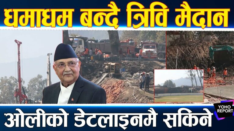 त्रिवि स्टेडियममा २४ सै घण्टा काम, ओलीले तोकेकै समयमा सकिने, मन्त्रीका दैनिक निरीक्षण, यस्तो बन्दै (भिडियो)