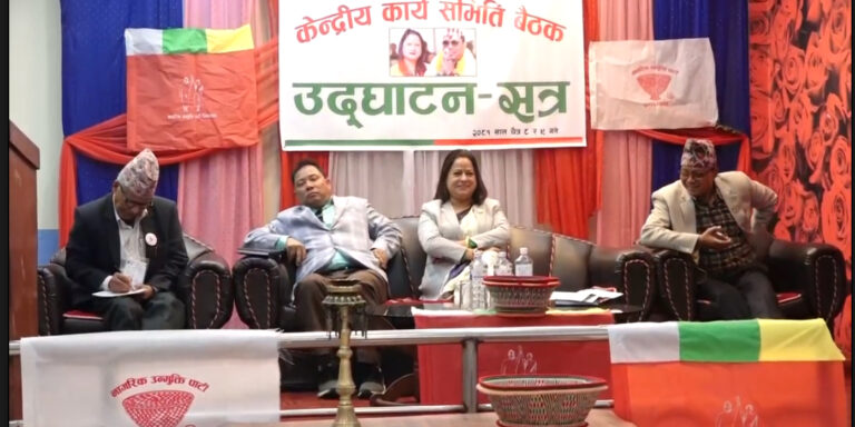 नागरिक उन्मुक्ति पार्टीको केन्द्रीय कार्यसमिति बैठक काठमाडौंमा सुरू भएको छ । बैठकमा पार्टीका संरक्षक रेशम चौधरी पनि उपस्थित छन् ।