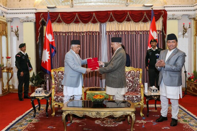 काठमाडौं—सरकारले आर्थिक वर्ष २०८०÷८१ को वार्षिक प्रतिवेदन राष्ट्रपति समक्ष पेश गरेको छ । प्रधानमन्त्री केपी शर्मा ओलीले आइतबार राष्ट्रपति भवन शीतल निवासमा राष्ट्रपति रामचन्द्र पौडेलसँग भेटेर आर्थिक वर्ष २०८०÷८१ को वार्षिक प्रतिवेदन बुझाएका हुन् ।