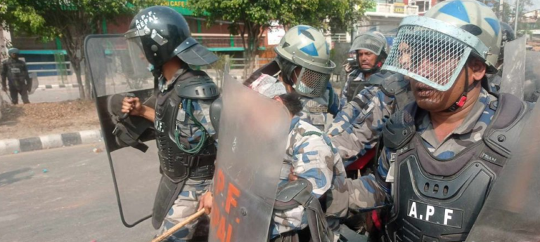 काठमाडौं—तीनकुनेमा एक महिला सशस्त्र प्रहरीको टाउको फुटेको छ । प्रदर्शनकारीले गरेको आक्रमणमा परेर ती सशस्त्र प्रहरी महिलाको टाउको फुटेको हो । राजावादी समूहको प्रदर्शन उग्र बनेपछि अहिले तीनकुने क्षेत्र तनावग्रस्त बनेको छ ।