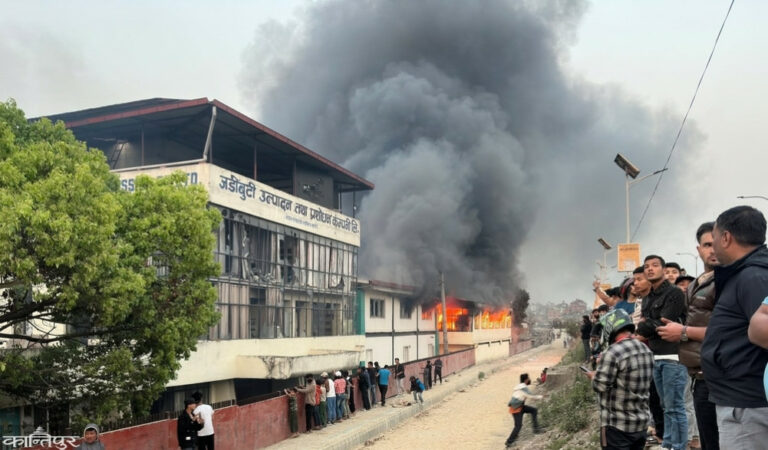 काठमाडौं—राजावादी प्रदर्शनकारीले कोटेश्वरस्थित जडीबुटी उत्पादन तथा प्रशोधन कम्पनी लिमिटेडको कार्यालयमा गरेको आगजनी नियन्त्रणबाहिर गएको छ ।