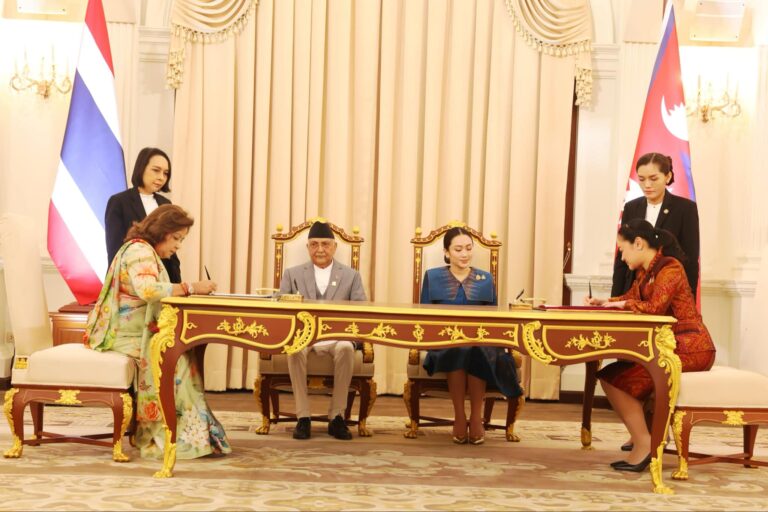 काठमाडौं—नेपाल र थाइल्याण्डबीच पर्यटन र संस्कृतिसँग सम्बन्धित दुई समझदारीपत्रमा हस्ताक्षर भएको छ । थाइल्याण्डको औपचारिक भ्रमणमा रहेका प्रधानमन्त्री केपी शर्मा ओली र थाइल्याण्डका प्रधानमन्त्री पे थिङ् शिनावात्को उपस्थितिमा आज ती समझदारीपत्रमा हस्ताक्षर गरेका हुन् ।