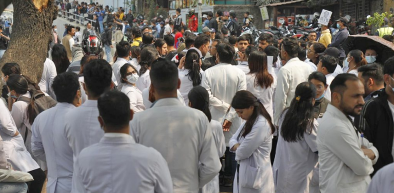 उनीहरूले ‘स्वास्थ्य शिक्षा माथिको चरम व्यापारीकरण नियन्त्रण गर’, ‘पीजी सिटको कालोबजारी बन्द गर’, स्वास्थ्य शिक्षामाथि राजनीति बन्द गर, आवासीय चिकित्सकमाथिको श्रम शोषण बन्द गर, लगायतका प्लेकार्ड बोकेर प्रदर्शन गरिरहेका छन् ।