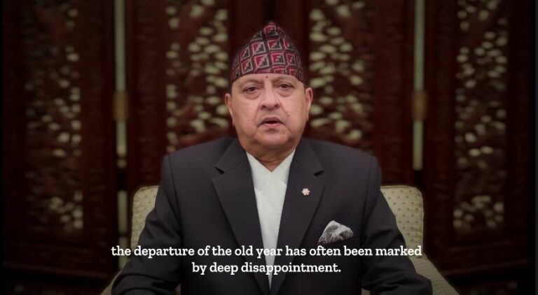 नयाँ वर्षको छेको पार्दै शाहले तयार पारेको १३ मिनेट लामो शुभकामना सन्देशमा उनले तीनकुनेको हिंसात्मक प्रदर्शनले दुःखि बनाएको उल्लेख गरेका छन् । उनले भने, ‘केही दिनअघि जनप्रदर्शनमा जुनप्रकारको हिंसा, आगजनी, तोडफोड भयो त्यसबाट जसप्रकारको मानवीय एवं भौतिक क्षति भयो, त्यो सुन्दा हामीलाई अत्यन्तै दुःख लागेको छ।’
