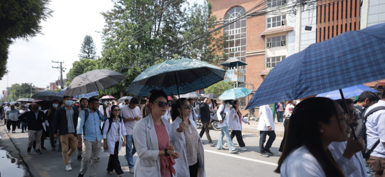 काठमाडौं—आन्दोलनमा रहेका चिकित्सकहरूले आज २७ औँ दिनमा पनि काठमाडौंमा प्रदर्शन गरेका छन् । गत चैत २१ गतेदेखि सेवा बहिष्कार गरेर सडकमा उत्रिएका आवासीय चिकित्सकहरूले आज माइतीघरदेखि बानेश्वरसम्म प्रदर्शन गरेका हुन् ।