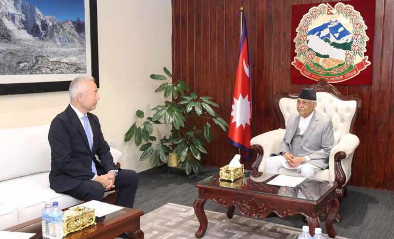 काठमाडौं—प्रधानमन्त्री केपी शर्मा ओलीसित नेपालका निम्ति जापानका राजदूत माइदा तोरुले आइतबार शिष्टाचार भेट गरेका छन् ।