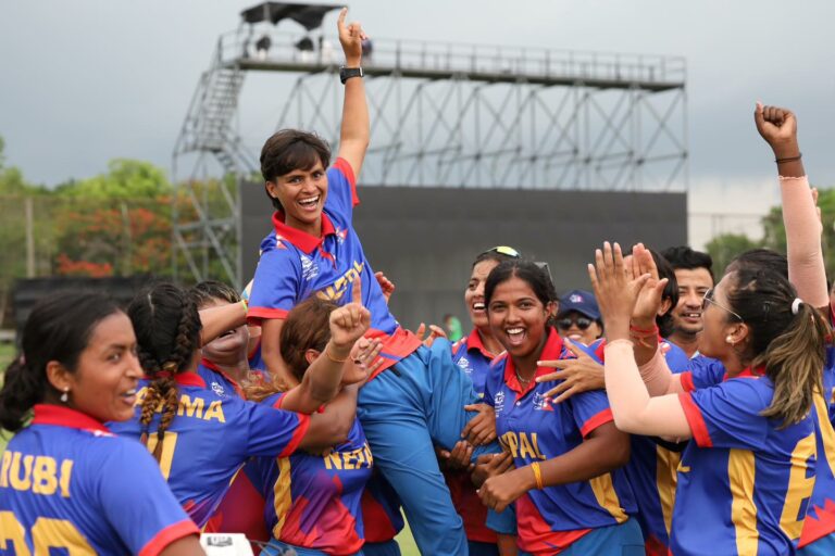 काठमाडौं—नेपाल पहिलोपटक आईसीसी महिला टी–२० विश्वकप एसिया छनोट पार गर्दै ग्लोबल छनोटमा पुगेको छ । सोमबार सुपर ३ अन्तर्गत यूएईसँगको खेल जित्दै नेपालले ग्लोबल छनोटमा स्थान बनाएको हो । नेपालले युएईलाई ५ विकेटले हरायो ।