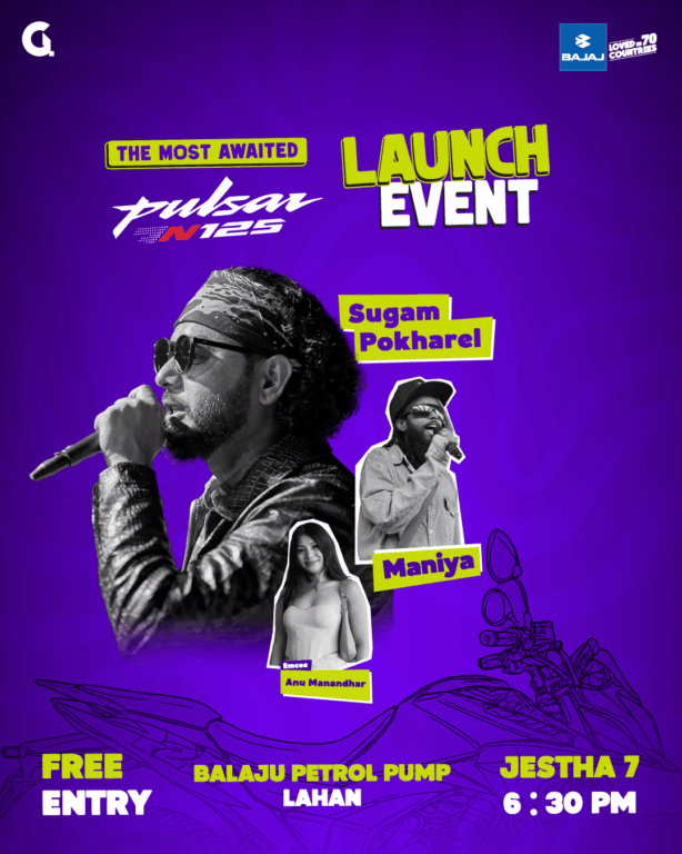 जेठ ७ गते साँझ ६:३० बजेदेखि चौधरी होटल, लहानमा हुन गईरहेको यस कार्यक्रममा प्रवेश निशुल्क हुनेछ। कार्यक्रममा चर्चित नेपाली कलाकारहरू सुगम पोखरेल र मानियाको लाइभ प्रस्तुति रहनेछ। कार्यक्रमको संचालन एम्सी अनु मानन्धरले गर्नुहुनेछ । कार्यक्रमको मुख्य आकर्षण नयाँ पल्सर N125 हो, जसमा १२४.५८cc एयर-कुल्ड, सिंगल सिलिन्डर इञ्जिन छ, जसले ८.८२ kW पावर र ११ Nm टर्क उत्पादन गर्दछ। यो १२५cc सेग्मेन्टमा पावर र स्टाइलको उत्कृष्ट संयोजन हो।