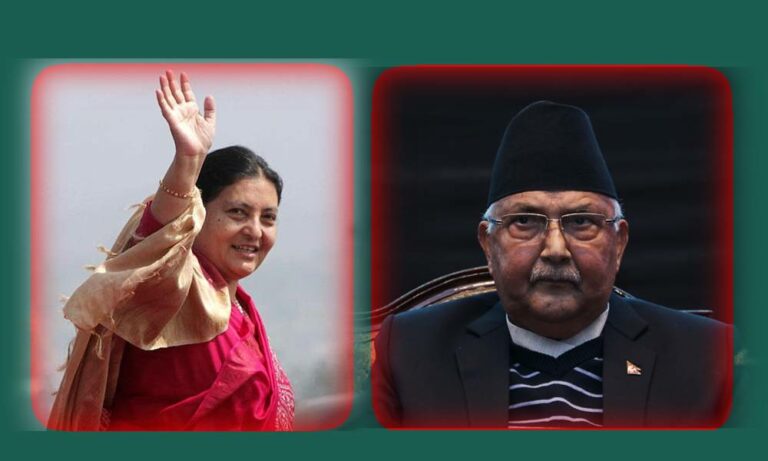 ओलीले आफू बिनाको एमाले सम्भव नभएको भन्दै बेला बेला भण्डारी लक्षित टिप्पणी गर्ने गरेका छन् । उनले एमालेभित्र आफ्नो विरुद्ध खडा नहुन पनि चेतावनी दिएका छन् । तर, ओलीलाई झस्काउने गरि भण्डारी शनिबार चीन भ्रमणमा जान लागेकी हुन् ।