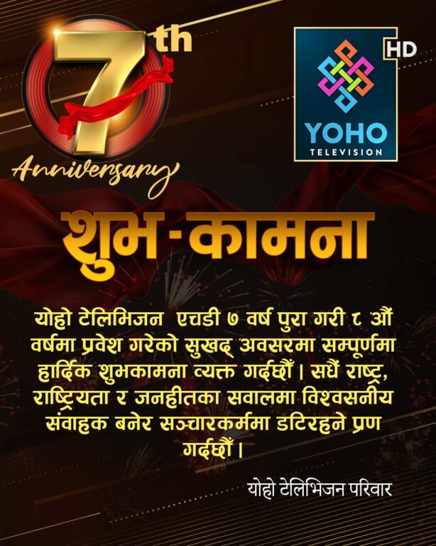 काठमाडौँ । नेपाली सञ्चार जगतमा एक विशिष्ट पहिचान स्थापित गरेको योहो टेलिभिजन एचडीले आज आफ्नो गौरवमय सातौँ वार्षिकोत्सव मनाउँदै छ ।