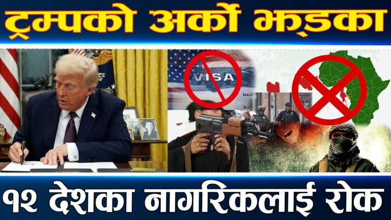 काठमाडौं—अमेरिकी राष्ट्रपति डोनाल्ड ट्रम्पले १२ देशका नागरिकलाई अमेरिका यात्रामा पूर्णप्रतिबन्ध लगाउने निर्णय गरेका छन् ।