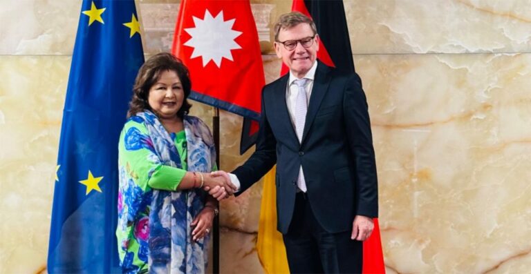 काठमाडौं—परराष्ट्रमन्त्री डा. आरजु राणा देउवा र जर्मनीका विदेशमन्त्री डा.जोहान डेविड वेडफुलबीच द्विपक्षीय भेटवार्ता भएको छ । जर्मनीको बर्लिनमा भएको सो वार्ताका क्रममा नेपाल जर्मनी सम्बन्ध, द्विपक्षीय हित र साझा चासोका विविध विषयमा कुराकानी भएको थियो ।