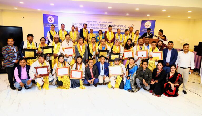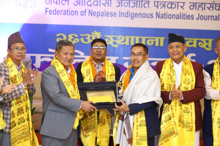 काठमाडौं— नेपाल आदिवासी जनजाति पत्रकार महासंघ (फोनिज) ले आफ्नो २६ औं स्थापना दिवस मनाएको छ । सञ्चार तथा सूचनाप्रविधिमन्त्री पृथ्वीसुब्बा गुरुङद्वारा उद्घाटन गरिएको कार्यक्रममा फोनिजले १२ जना पत्रकारलाई सम्मान गरेको छ ।