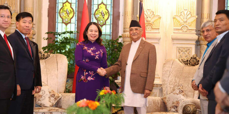 काठमाडौं । प्रधानमन्त्री केपी शर्मा ओली र नेपाल भ्रमणमा रहेकी भियतनामका उपराष्ट्रपति भो थि आन सुआनबीचको भेटवार्ता भएको छ । भेटमा दुई देशबीचको आपसी सम्बन्ध अझ प्रगाढ बनाउँदै लाने विषयमा छलफल भएको छ ।