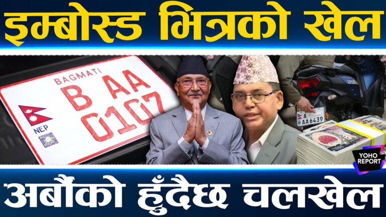 काठमाडौं— वर्षौंदेखि लिखित र ट्रायल पास गरेर सवारीचालक अनुमतिपत्र (लाइसेन्स) को पर्खाइमा बसेका २४ लाख नागरिकलाई समयमा लाइसेन्स उपलब्ध गराउन नसकेर लाचार बनेको सरकारले फेरि इम्बोस्ड नम्बर प्लेट जडानको अर्को झन्झट थपिदिएको छ । सर्वसाधारणलाई जबर्जस्ती किन लादिँदै छ इम्बोस्ड नम्बर प्लेट ? इम्बोस्ड नम्बर प्लेट किन र कसरी बाध्यकारी बनाइँदै छ भनेर बुझ्न नौ वर्ष अघि फर्किनुपर्ने हुन्छ । नौ वर्षअघि आवश्यक पूर्वाधारबिनै कमिसनको चक्करमा भित्र्याइएको इम्बोस्ड नम्बर प्लेट अनिवार्य गर्ने योजनाभित्र साढे पाँच अर्बको खेलोफड्को लुकेको छ ।यसका लागि सरकारले एक बंगलादेशी र एक अमेरिकी कम्पनीलाई छनोट गरेको छ । अर्थात्, यो ठेक्का बंगलादेशको टाइगर आईटी र अमेरिकी कम्पनी डेकाटुरले संयुक्त रूपमा पाएका छन् । तर, उनीहरूका नेपाली एजेन्ट को हुन् भन्ने यकिन नभए पनि लोकल एजेन्टका रूपमा काम गर्ने डेल्टा कोर प्रालिले १७ करोड रुपैयाँ बुझेको तथ्य बाहिर आएको छ । सरकार र राष्ट्रपति कार्यालयसँग निकट व्यक्तिहरूको समेत यसमा संलग्नता रहेको आशंका छ । फलस्वरूप, अकुत कमिसनको लोभमा यो योजना अव्यावहारिक हुँदाहुँदै पनि सरकार सञ्चालकहरू यसकै पछाडि दौडिएको आरोप लाग्दै आएको छ । यो खेलमा वर्तमान राष्ट्रपति रामचन्द्र पौडेलका सल्लाहकार सुनिल थापाका छोरा र परराष्ट्रमन्त्री एवं देउवा पत्नी आरजु राणाका भाइ भूषण राणा लागिपरेको आरोप छ ।