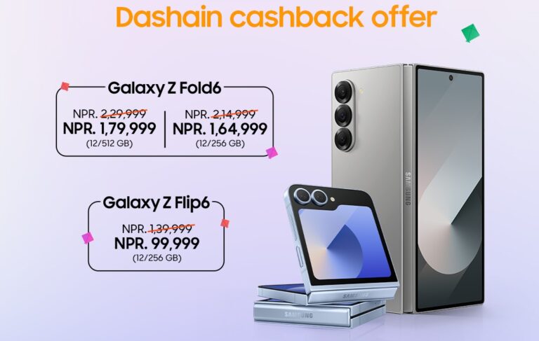 In celebration of this year’s Dashain festival, Samsung Nepal is pleased to announce special festive pricing on – Galaxy Z Fold6 and Galaxy Z Flip6. This festive offer enables customers to experience premium foldable technology at significantly reduced prices, with cashback of up to NPR 50,000.