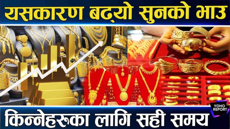 नेपाली बजारमा सुनको मूल्य सुन्ने नसकिनेगरी आकाशिएको छ । यो क्रम निरन्तर रहँदा रेकर्ड बनाउने क्रम अझै केही दिन रोकिने अवस्था छैन । ठिक ६ महिनाअघि बैशाखमा सुनको मूल्य १ लाख ८४ हजार ६०० थियो । अहिले प्रतितोला सुनको मूल्य २ लाख ३९ हजार दुई सय रुपैयाँ पुगेको छ । दशैंअघि अन्तिम कारोबारको दिन असोज १२ गते सुनको मूल्य २ लाख २३ हजार दुई सय रुपैयाँ थियो । त्यसपछि बजार खुलेको गत मंगलवार २३ सय, बुधबार २६ सय र बिहीबार २२ सय रुपैयाँले बढ्यो । अर्थात दशैंयता मात्र सुनको मूल्य १६ हजार रुपैयाँले बढिसकेको छ । यसरी सुनको भाउले दिनदिनै रेकर्ड तोड्दै जानुमा आन्तरीक भन्दा पनि वाह्य कारण बढी रहेको सुनचाँदी व्यवसायीहरु बताउछन् । उनीहरुका अनुसार सुनको भाउ कोभिडयता नै निरन्तर बढ्दै गएको छ । अहिले अन्तर्राष्ट्रिय बजारमा पनि सुनको मूल्य उच्च रहेर प्रतिऔंस चार हजार ५५ अमेरिकी डलरमा कारोबार भइरहेको छ । यो क्रम कहीलेसम्म बढिरहने हो भन्न सकिने अवस्था छैन् । रुस–युक्रेन युद्धदेखि, अन्य ठूला शक्ति राष्ट्रबीच संघर्ष चर्किंदा सुनको भाउ झन् पनि झन् बढ्दै गएको व्यवसायीको बुझाइ छ । रुस–युक्रेन, इजरेल–हमासको युद्ध र अमेरिकी राष्ट्रपति डोनल्ड ट्रम्पले विश्वका कैयौँ देशमा लगाएको कर नीति पनि कारक रहेको व्यवसायीहरु बताउँछन् ।