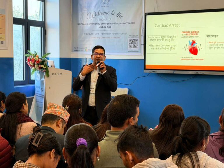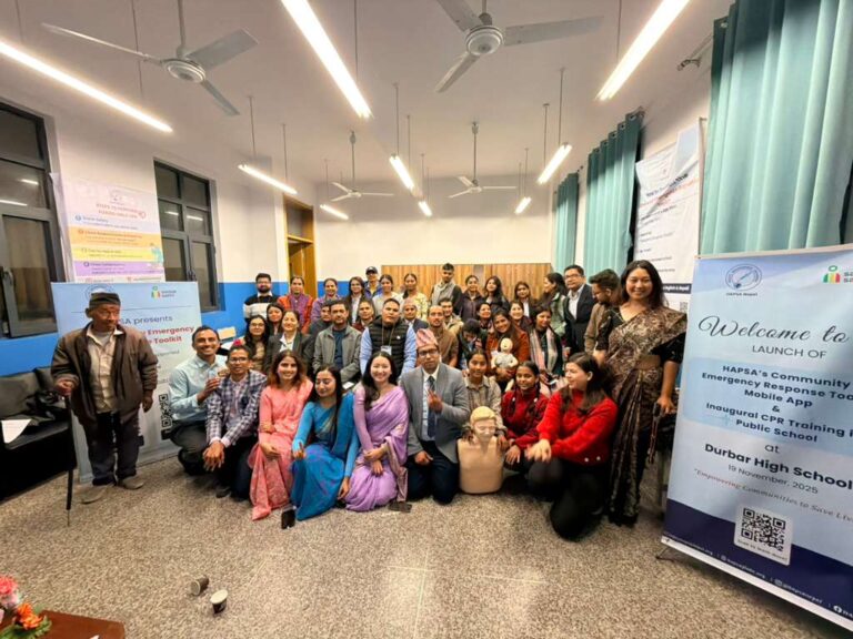 HAPSA Nepal (Health Advancement Programs to Serve All) is a nonprofit organization dedicated to advancing equitable emergency care across rural Nepal. HAPSA strengthens first responders with lifesaving skills, improves prehospital care pathways, and leads community-centered disaster preparedness and relief initiatives.“Empowering communities to act quickly and confidently in emergencies is essential to building a safety net for Nepal,” said Dr. Ramu Kharel, Founder of HAPSA Nepal and Assistant Professor of Emergency Medicine at Brown University in the United States. “HAPSA has been working to advance community-focused healthcare since 2013. Our vision is to integrate essential lifesaving skills into the national curriculum so every Nepali student grows up prepared to respond in an emergency.”